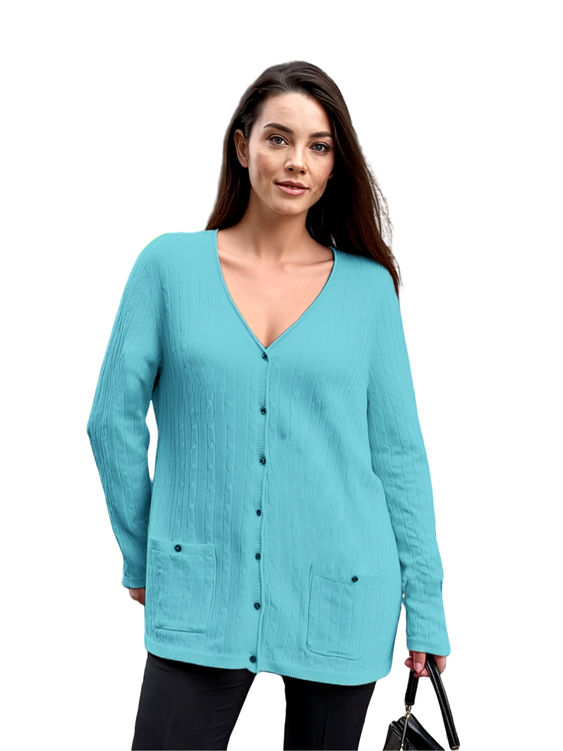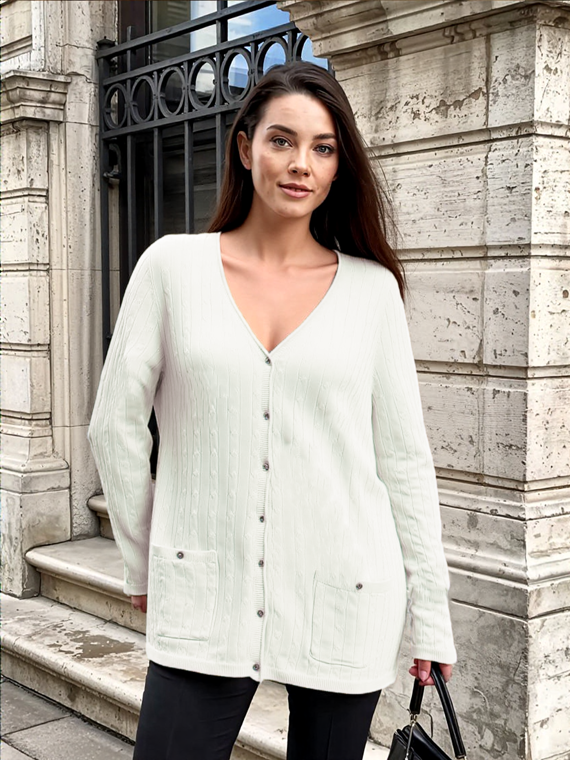 Pima Cotton V Neck Cable-knit Cardigan #14336